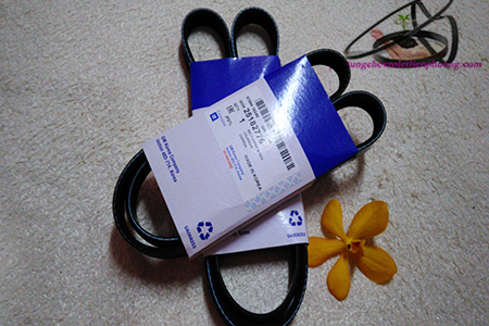 Được lắp đặt ở phía bên phải của động cơ. Là dây dài 4pk 840nối thành vòng tròn liên tục, màu đen (do nguồn gốc chế biến từ dầu mỏ).
